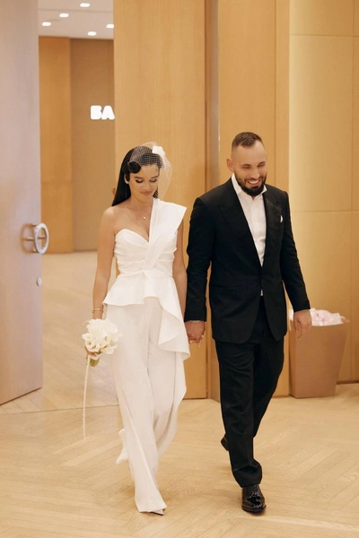 Спустя месяц устроили шумную вечеринку в Санкт-Петербурге. Миногарова появилась в нескольких образах: элегантный комбинезон, сложные дизайнерские платья. Горчилин же вообще превратился в нео-рыцаря.