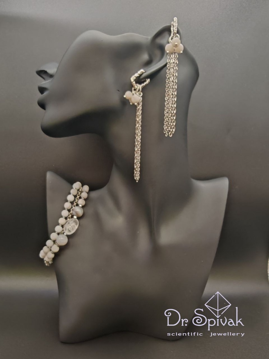 Изысканный комплект ручной работы "Лунная соната", состоящий из многорядного браслета и трансформируемых серег-конго, выполнен из