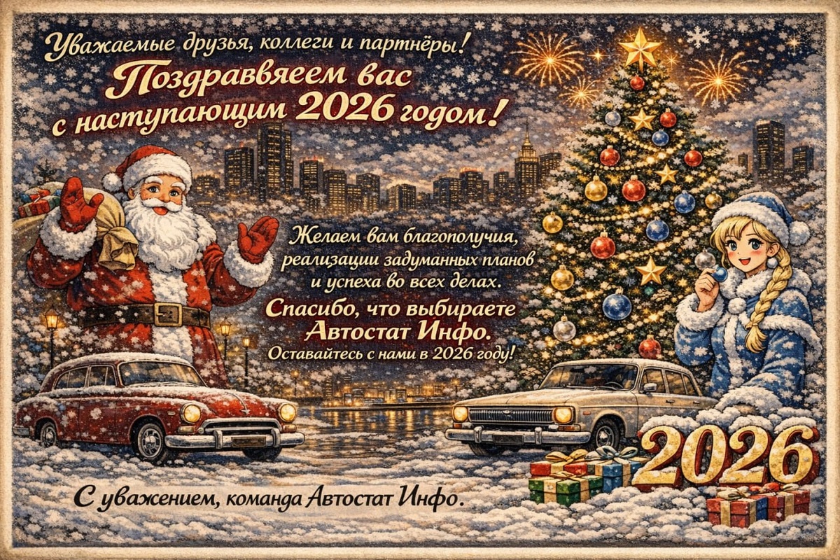 ! 🎄 Команда "Автостат Инфо" поздравляет вас с наступающим Новым годом! Желаем вам в 2026 году достичь поставленных целей и реализовать намеченные планы! Процветания вашему бизнесу и благополучия вашим семьям! 🥳 Оставайтесь с нами: https://dzen.ru/id/65ba42b03fa61e5d90af5cca