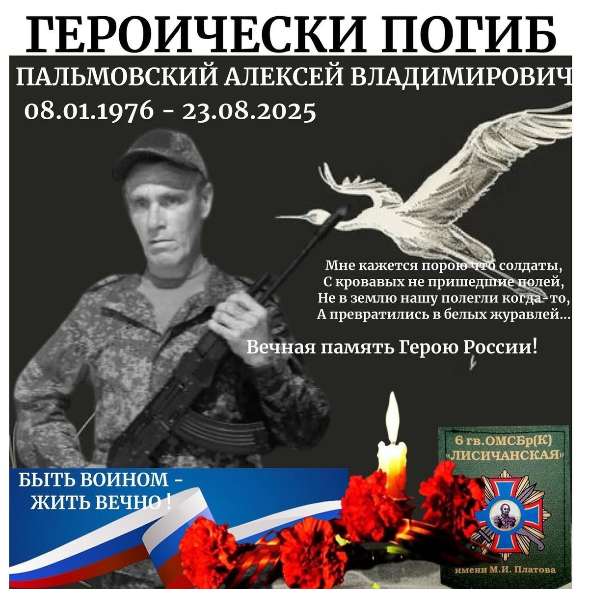 С глубоким прискорбием сообщаю о том, что в зоне специальной военной операции погиб Пальмовский Алексей Владимирович (08.01.1976