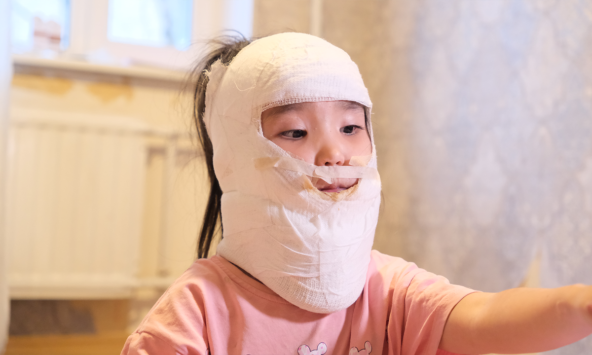 Она была счастливой четырёхлетней девочкой, почти никогда не болела, любила гулять и играть с ребятишками. Но один случай перечеркнул всю её прежнюю жизнь: во время уборки во дворе взорвался баллон. Пламя охватило малышку мгновенно, она получила сильнейшие ожоги лица, шеи, рук, груди. После кошмара больниц и перевязок на нежной коже Айзере выросли уродливые рубцы. Они стянули кожу, как панцирь. Девочка не могла повернуть голову, нормально ходить и даже есть — рубцы вывернули ей губы. Уши свернулись и перестали слышать. Малышка прошла через ужасную боль, перевязки, осложнения, операции. Её состояние удалось стабилизировать, но путь к прежней здоровой жизни только начинается. Малышка растет, а рубцы нет. Это грозит потерей подвижности суставов, перетягивает кожу, не дает развиваться. Первая сложнейшая операция по иссечению рубцов уже позади. Врачи вернули ей слух, частично освободили шею и губу. Ушли самые мучительные боли. Но чтобы снять страшный «панцирь» шрамов и остановить уродующие