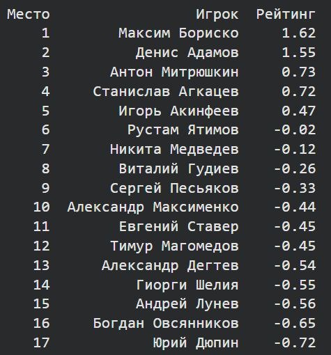 Когда составлял рейтинг тренеров, решил, что пора бы придумать систему оценивания для игроков одной позиции. Начинаю с вратарей: для наглядности есть графики и общий рейтинг. (Детали системы оценивания — в первом комменте.) 1. Максим Бориско Первый по предотвращенным голам с солидным отрывом (потягаться может только Адамов), спасал чаще коллег. Пропустил всего 2 гола с игры за 18 туров! 2. Денис Адамов Выиграл конкуренцию у Латышонка и выдал роскошный отрезок. 2-й по игре на линии, 1-й по игре ногами — в любом другом сезоне этого хватило бы для победы. Но не в год «Балтики». 3. Антон Митрюшкин Однозначно лучший год в карьере Антона. Двойной сейв перед голом «Краснодара» и спасения после ударов Сергеева — главные вратарские хайлайты РПЛ. 4. Станислав Агкацев Никакого спада, Стас все еще в порядке. Просто: а) подтянулись остальные; б) спасать приходится меньше, чем год назад. Оборона «Краснодара» стала надежнее. Фактически делит третье место с Митрюшкиным. 5. Игорь Акинфеев По