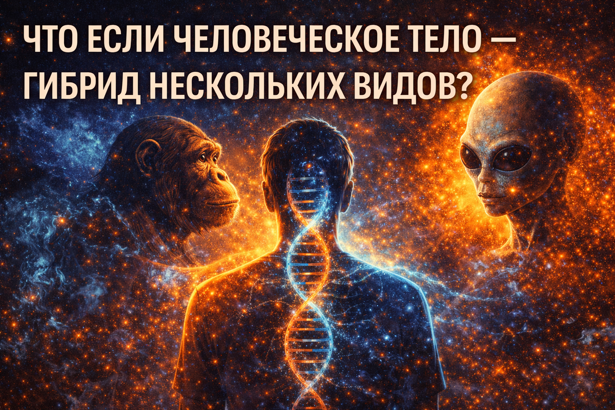 Ты когда-нибудь задумывался, почему человеческое тело настолько странно устроено? С одной стороны, мы — венец эволюции, вид, покоривший планету. С другой — ломаемся от лёгкого падения, слепнем ночью и умираем от банальных вирусов. Добавь к этому странности вроде рудиментарного хвостика, зубов мудрости, аппендикса и слабой спины — и возникает резонный вопрос: а точно ли мы результат «естественного» развития? Или в нашем биологическом коде что-то... добавлено извне? В этой статье — разбор теории, которая звучит как научная фантастика, но при внимательном рассмотрении вызывает всё меньше скепсиса: возможно, человек — это гибрид нескольких видов, и один из них мог быть внеземным. Начнём с фактов. Геном человека состоит примерно из 3 миллиардов пар оснований. Из них около 8% — это эндогенные ретровирусы, встроенные в ДНК наших предков миллионы лет назад. Учёные до сих пор не могут объяснить, зачем природе понадобилось встраивать в наш генетический код вирусы. А ещё — более 200 уникальных ге