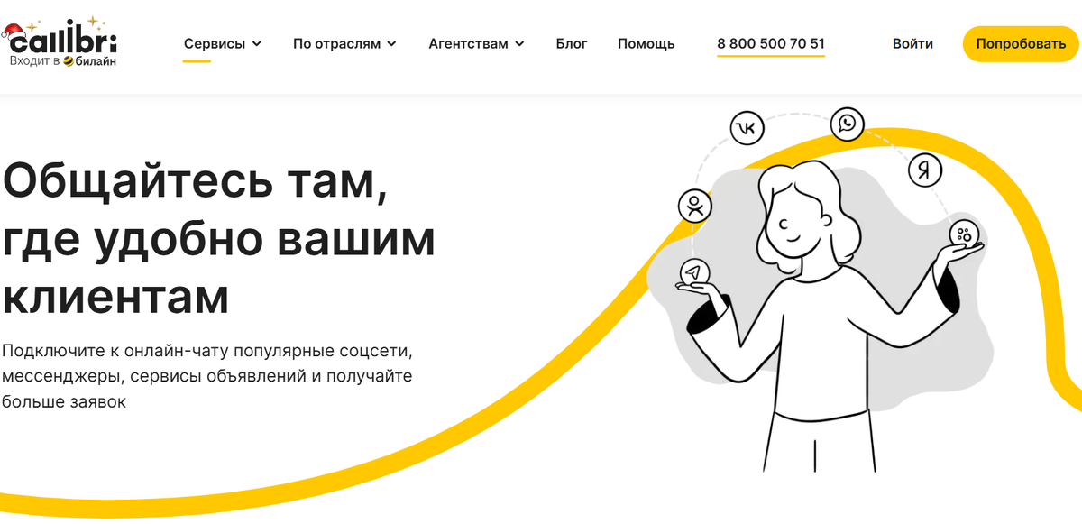 Callibri — это мощная российская экосистема, которая превращает разрозненные чаты в структурированный поток заявок. Основной упор сделан на прозрачность: вы не просто отвечаете клиенту, а видите весь его путь от рекламного клика до смс в мессенджере.