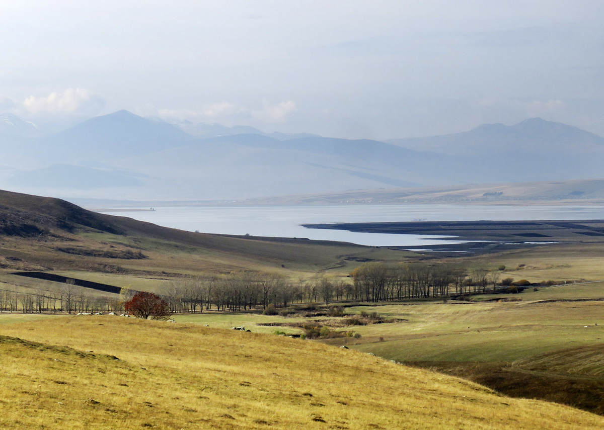 На востоке оно образует несколько огромных ступеней, по которым спрыгивает к Куре глубокими каньонами речка Храми: знойные Марнеули и Болниси (это не Триалетия, а отдельный регион Борчало) стоят в 400-500 метрах над уровнем моря, лесистые Тетрицкаро и Манглиси - в 1100-1200, ну а Цалка лежит на уровне высочайших вершин Крыма или Урала, в 1,5 километрах над уровнем моря. Подъём туда довольно плавный - просто в какой-то момент замечаешь, что небо стало чуть прозрачнее, а жёлтые деревья соседствуют не с зелёными, а с голыми.