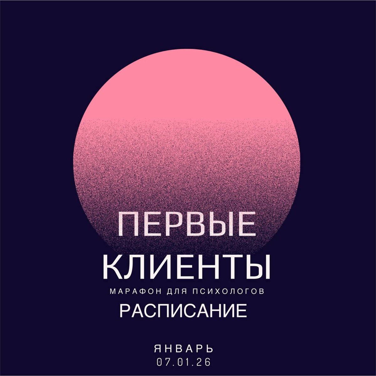 РАСПИСАНИЕ 07.01.26-11.01.26 время МСК ЗУМ-ОНЛАЙН 07.01.26 1) Лекция: Ограничения и ресурсы начала практики. 2) Домашнее задание к лекции 3) Ответы на вопросы по лекции и д/з в чате. 08.01.26 1) Разбор домашнего задания + знакомство друг с другом. Встреча с 10.30 до 12.00 МСК - ЗУМ. Запись. 2) Лекция: Где же вы клиенты? Как быть начинающему психологу, где брать клиентов и почему они не находятся? 3) Домашнее задание к лекции 4) Ответы на вопросы по лекции и д/з в чате. 09.01.26 1) Лекция: Первая консультация. Тактики и стратегии ведения эффективной встречи. Инструменты для проведения. 2) Домашнее задание к лекции. 3) Ответы на вопросы по лекции и д/з в чате. 10.01.26 1) Встреча тренинг по первой консультации с 10.30 до 13.30. Короткие консультации, выявление личностного стиля, тактик и стратегий работы, ограничений, сложностей и ресурсов. Нет записи. 2) Лекция: Эффективное объявление для клиентов. Маркетинг и этика. Социальные площадки, соответствие им и их анализ. 3) Домашнее за