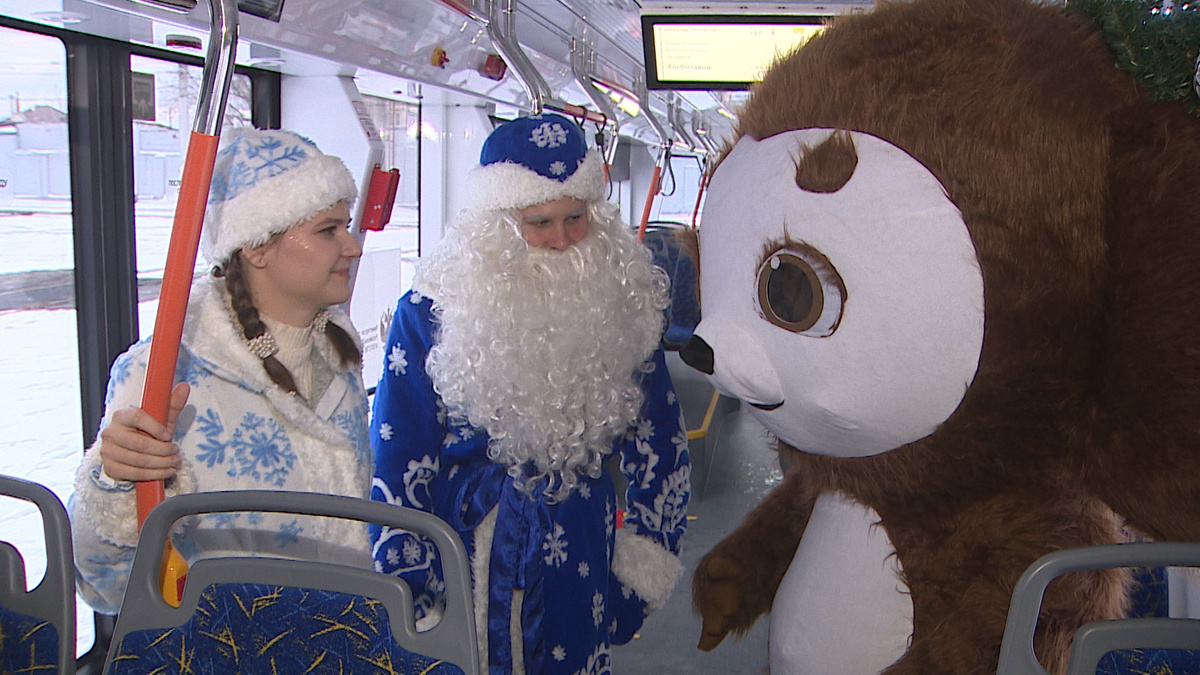 Волгоградцы в канун праздника смогли прокатиться на новогоднем трамвае с необычным экипажем на борту – Дедом Морозом, Снегурочкой и Чебурашкой. Сказочные персонажи провели с пассажирами интерактивные игры – акция «Новогодний маршрут» ежегодно позволяет окунуться в атмосферу предстоящего торжества. «Уважаемые волгоградцы и гости города-героя, администрация города и коллектив транспортного предприятия поздравляет Вас с Новым годом и Рождеством!» Так из всех динамиков «Львенка» волгоградцам напоминают, Новый год уже совсем скоро. На день трамвай превратился в новогодний. С волшебным экипажем на борту – Дедом Морозом, Чебурашкой и сразу двумя снегурочками. Одна отвечает за праздничную атмосферу в салоне, другая – управляет самим трамваем. Татьяна Чижова – водитель. В костюме внучки Деда Мороза работает уже шестой год. «Чтобы людям как-то интересно было. На самом деле многие реагируют очень позитивно. Даже вплоть до того было, что люди пели песни новогодние. На дорожно-транспортную безопасн
