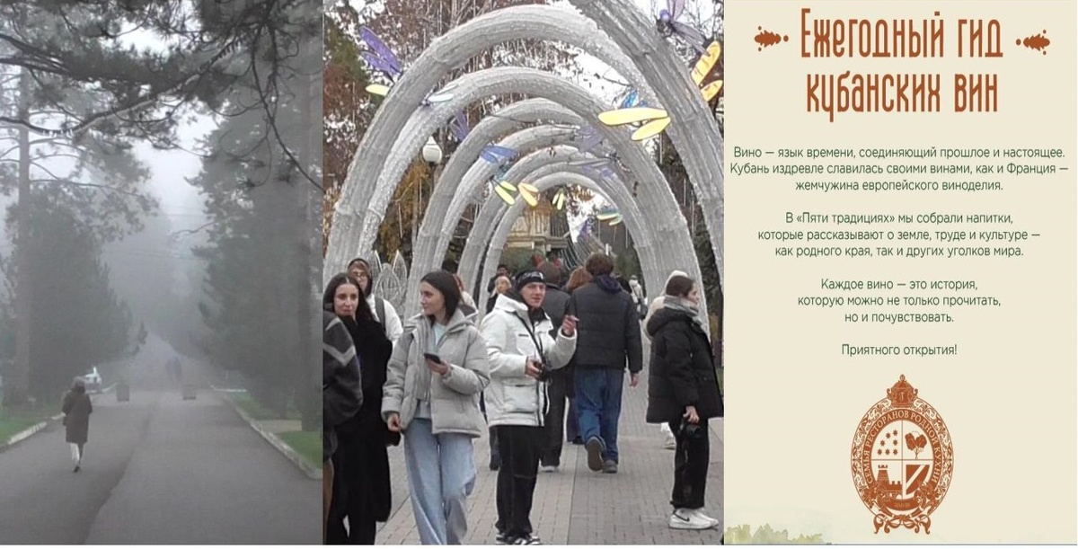 Про парк Галицого можно писать только в превосходных эпитетах. Он поражает как размахом, так и продуманностью. И впечатляет, несмотря на далеко не лучший сезон. А весной и летом — просто сказка. Нам еще и с погодой не повезло, был туман, хотя это добавило своего шарма. В парке всегда многолюдно, даже в такую погоду, а к вечеру, когда включили новогоднюю иллюминацию, еще прибавилось гуляющих. Но парк — это тот случай, когда лучше один раз вживую увидеть, или хотя бы посмотреть картинки на разных сайтах, погуглив «парк Галицкого Краснодар».