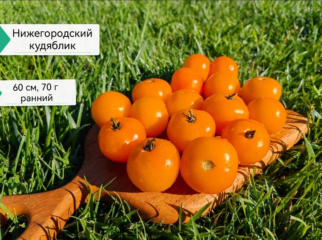 Детерминантный сорт. Созревает одним из первых. Быстро и дружно отдаёт урожай. Можно не пасынковать (удалить лишь пасынки, которые лежат на земле). Плоды ярко-оранжевые, массой 60-70 г. Неприхотливый сорт, можно сажать его "в ноги" к высокорослым томатам.