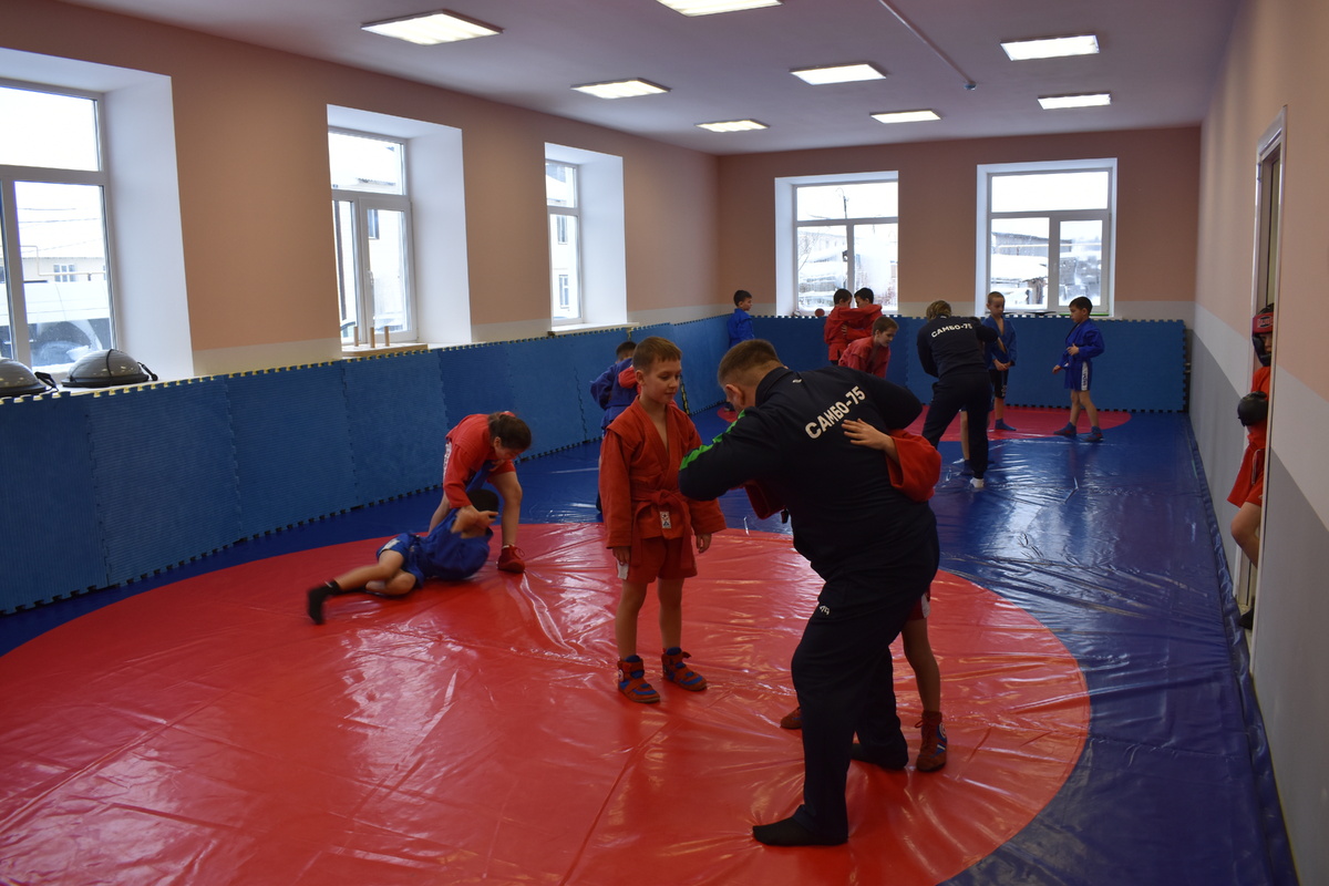 В микрорайоне СУ-3 открыт многофункциональный спортивный объект В последний рабочий день уходящего года в Давлеканово прошло мероприятие, которое стало важным событием в спортивной жизни города. Сегодня в микрорайоне СУ-3 состоялось торжественное открытие многофункционального спортивного зала детско-юношеской школы «Самбо-75», который получил новую прописку по адресу Чкалова, 6. Филиал учреждения дополнительного образования существовал в этой части города и ранее на Чкалова, 5, но его помещение стало ветхим, морально устарело и не отвечало современным требованиям образовательного процесса. Поэтому было принято решение в рамках партийного проекта «Реальные дела» и привлечения средств местного бюджета реконструировать под спортивные цели расположенное рядом здание бывшего детского сада. Строительные работы начались на объекте в марте, и за прошедшее время силами подрядной организации был проделан значительный объем работы. В здании были демонтированы все старые перегородки и оставлены т