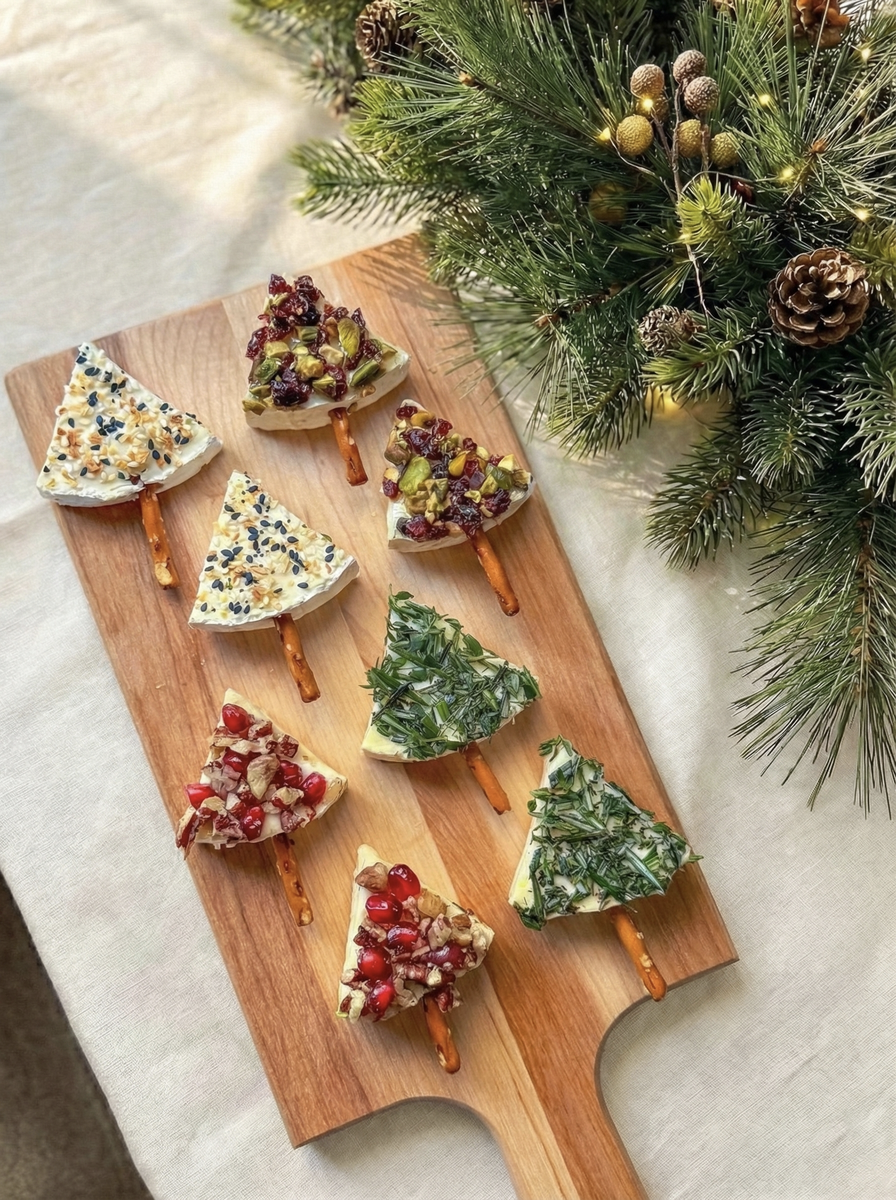 4. Подача. Выложите готовые «елочки» на деревянную доску или плоское блюдо.