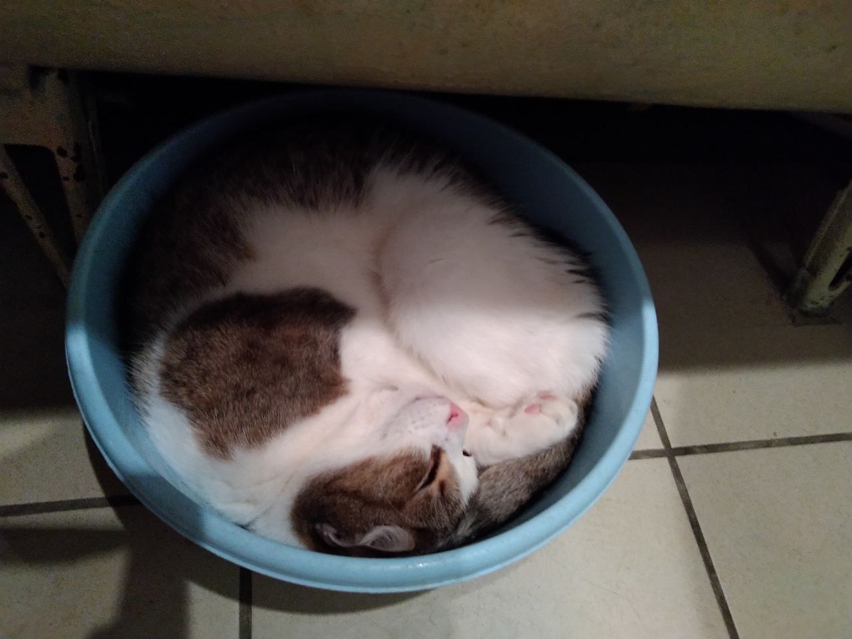 ! И с наступающими новым годом! Мы странные (долбанутые) котородители. Поэтому на новый год купили Бибе свой тазик, так как голубой - это Семёна. Чувствую, что нужно ещё два, один побольше. Так как теперь они лежат в них все. А вообще - коты это жидкость, поэтому заполняют предоставленный объем)😅 Привет от Бибы и Бобы от @Furoretto и от главкошек Семена и Фикси ❤️ Первый пост https://dzen.ru/media/animalrescueed/u-menia-novenkie-iz-shapok-devochka-i-chb-malchik-660986a0ef95770001a95eea