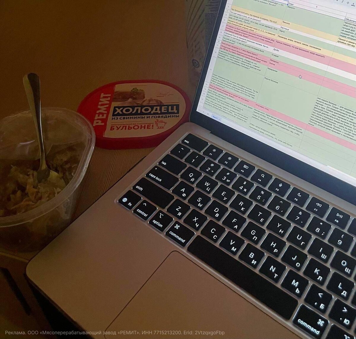 🙈 У вас как с загрузкой? Я тащу вечерние задачи домой и делаю чуть ли не из постели, но на голод пробирает ужасно. Вот недавно запечатлела вам свою «эстетику»: очередная таблица и холодец 🤪 У меня зимой это как мандарины для многих. Беру всегда один и тот же ремитовский, потому что другие не то. Не тот вкус, бульон, мясо. А в этом прям звезды будто сошлись. Вкус как сама наварила) Но без вот этой многочасовой возни на кухне. Им и стресс заедаю (надо же сладкое заменять чем-то полезным). В общем, пошла я работать дальше 😇