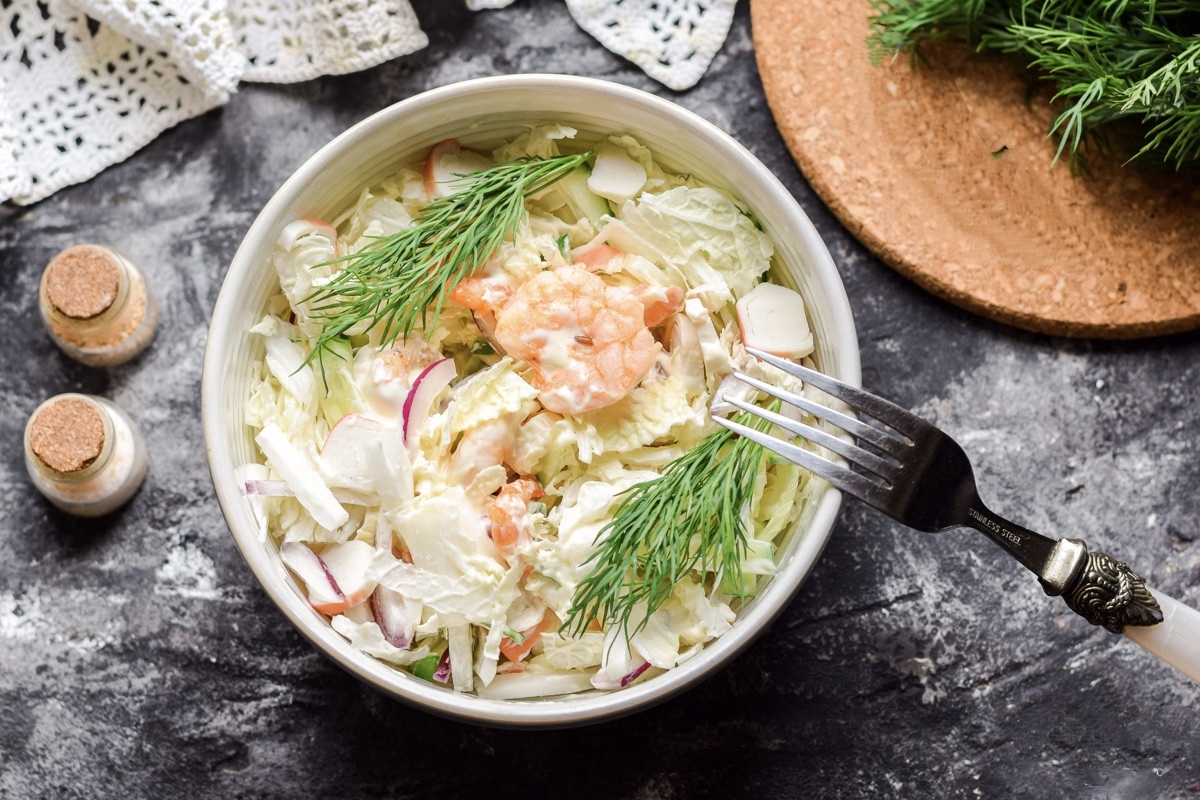 Салат с крабовыми палочками,ананасом и креветками — это идеальное сочетание для праздничного стола, которое удивит гостей и порадует домашних. Сладкие ноты ананаса, нежность крабовых палочек, пикантность креветок и хруст пекинской капусты создают гармоничный и свежий вкус. Наш рецепт покажет, как приготовить этот эффектный, но простой салат всего за 20 минут.
