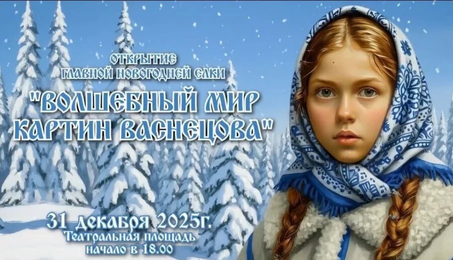 Яркая театрализованная постановка «Волшебный мир картин Васнецова» состоится на Театральной площади 31 декабря 2025 года в 18:00. — Жителей Калуги ждёт встреча с образами русских былин и легенд через призму творчества Виктора Васнецова. Театрализованная постановка по мотивам его знаменитых картин перенесёт художественные полотна на сцену, - рассказали в официальном Телеграм-канале Администрации города Калуги. Начало в 18:00.