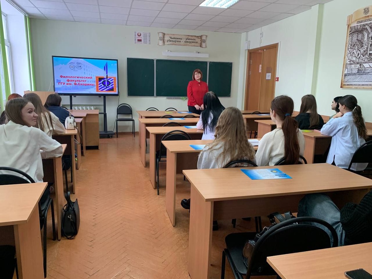 родную мову”. Будучых абітурыентаў сустрэла кіраўніцтва факультэта ў асобах дэкана А.М. Палуян і намесніка дэкана З.У. Шведавай, якія пазнаёмілі з асаблівасцямі ўступнай кампаніі на розныя спецыяльнасці, магчымасцях, што адчыняюцца перад студэнтамі, якія закончылі філалагічны факультэт. Дацэнт кафедры беларускай мовы Алена Фёдарава прачытала лекцыю “Экзамен в творчестве» для жадаючых паступіць на спецыяльнасць «Журналістыка». Захапляльны квіз па беларускай мове правяла дацэнт кафедры беларускай літаратуры Таццяна Пятроўская. Квіз аб’яднаў каманды ў незвычайных заданнях. Удзельнікі адгадвалі факты пра Францыска Скарыну, творы, фразеалагізмы па малюнках і рэдкія словы. Найбольш жыво прайшоў тур, дзе словы паказвалі жэстамі, а адзін чалавек іх адгадваў. У фінале ўдзельнікі атрымалі салодкія прызы.