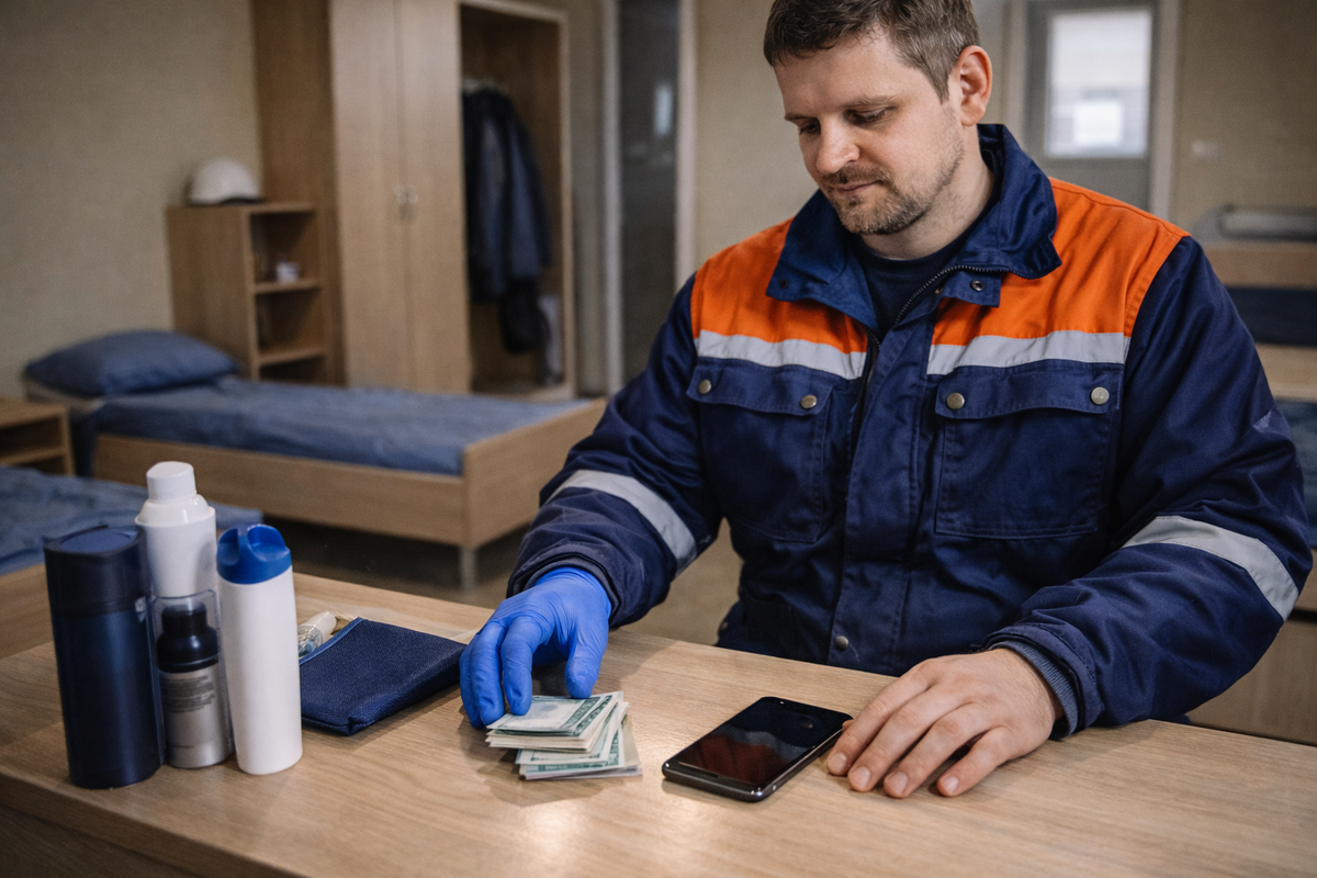 На практике сумма, которую стоит взять с собой, зависит не от зарплаты, а от условий и привычек человека. Даже при работе вахтой с проживанием и питанием полностью без расходов не обходится.