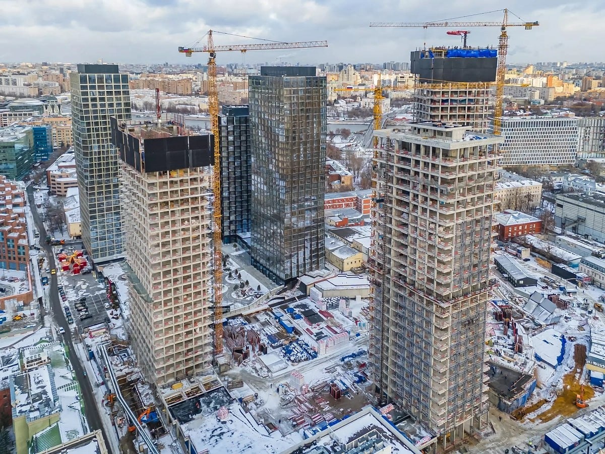 Внутри идёт монтаж инженерных систем и межквартирных перегородок из газобетонных блоков. 39-этажный корпус № 6 достиг отметки в 27 уровней. Монолит 47-этажной доминанты (№ 4) выполнен до 34-го этажа включительно. Внутри данных объёмов идёт монтаж межквартирных перегородок, инженерных систем, формируется конструктив теплосети, водоотведения и водоснабжения. На всех трёх корпусах продолжаются фасадные работы. Ведётся устройство закладных кронштейнов и стартовал монтаж профильной системы. Оконные модули пока не ставили. Но, судя по всему, этот процесс может стартовать уже в самое ближайшее время. #highlife 😊 Небоскрёбы России