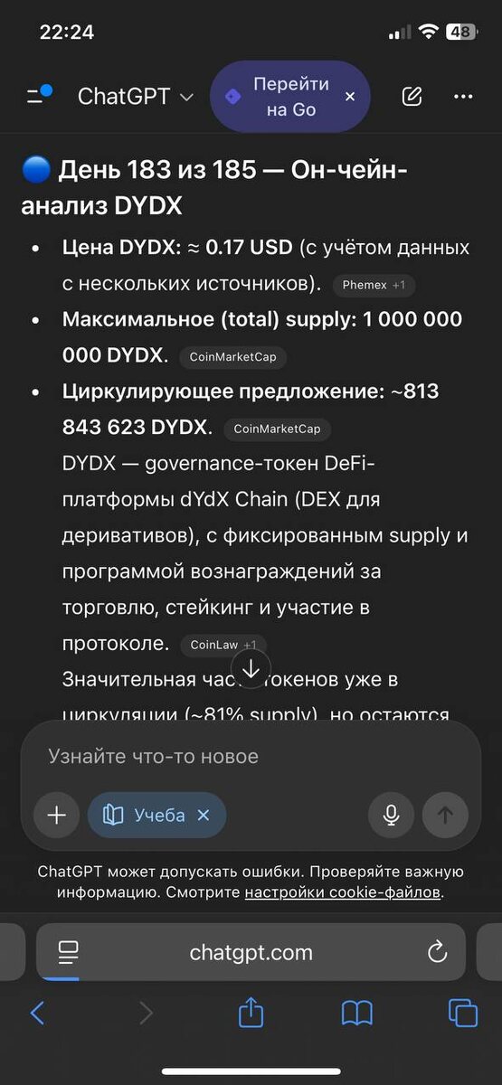 📊 📌 Цена — ~0.17 USD 📌 Max supply — 1 000 000 000 DYDX 📌 Circulating supply — ~813 843 623 DYDX 🔹 Большая часть токенов уже в обращении — рынок почти сформирован. 🔸 Вознаграждения за стейкинг и торговлю удерживают часть supply. ⚠️ Будущие unlock-ы и действия крупных держателей могут значительно влиять на цену. Вывод: DYDX чувствителен к фундаментальным он-чейн движениям — следи за активностью больших кошельков и графиком разблокировок. 💡 #челендж #альтсезон #альткоины BusineesEconomyBlockchain l Bybit