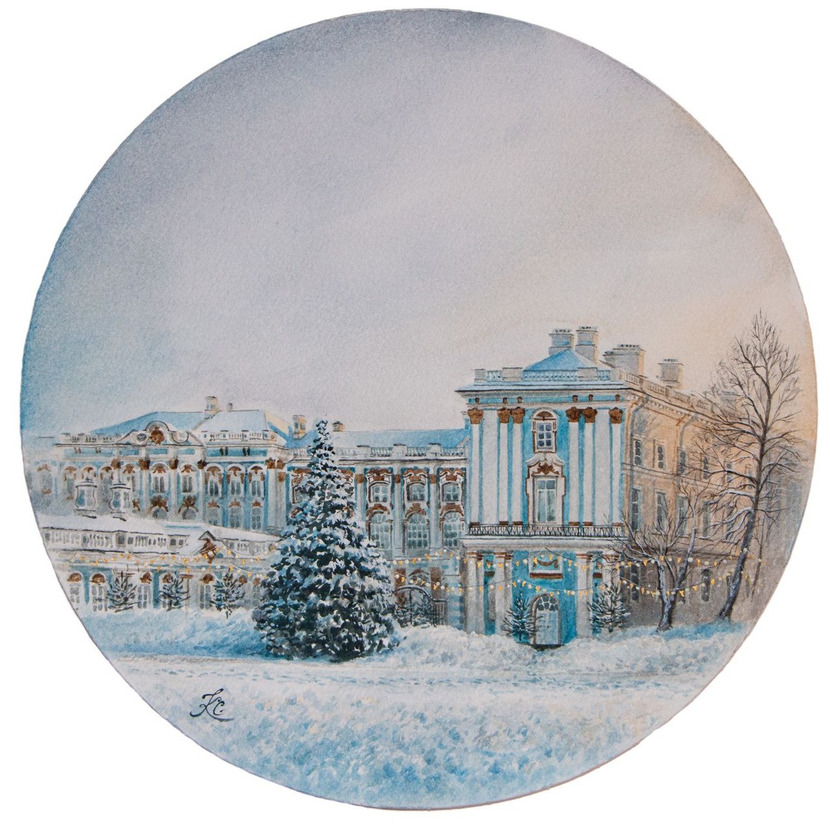 В качестве новогодней открытки пусть будет акварель "Царское Село зимой"