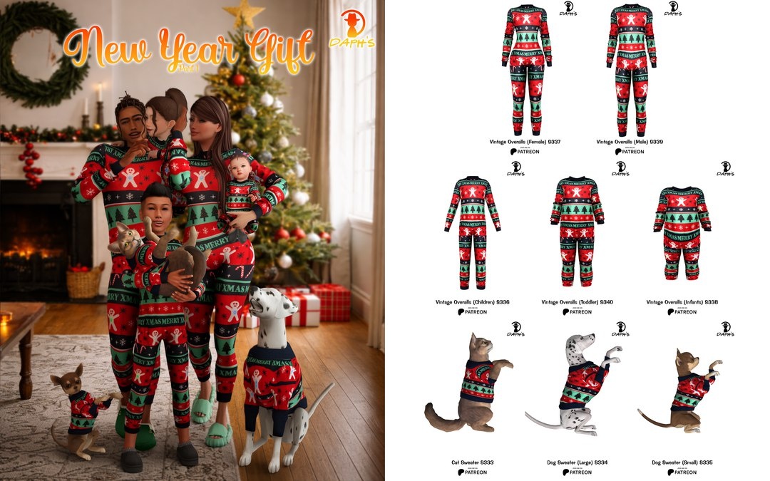 Подарите своим персонажам в The Sims 4 праздничное единство с рождественским комплектом одежды от Daph's! Этот очаровательный набор одинаковой пижамной одежды для всей семьи и даже питомцев создаст волшебную атмосферу зимних праздников. Идеальный подарок для уютных игровых сессий в канун Нового года. Скачать: https://simsfans.ru/28502 #Sims4@simsfans_ru #Sims4GetTogether #Sims4Fashion