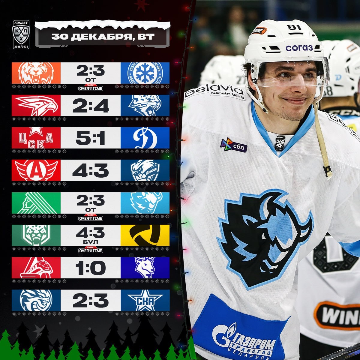 🔥 Итоги последнего игрового дня 2025 года в КХЛ