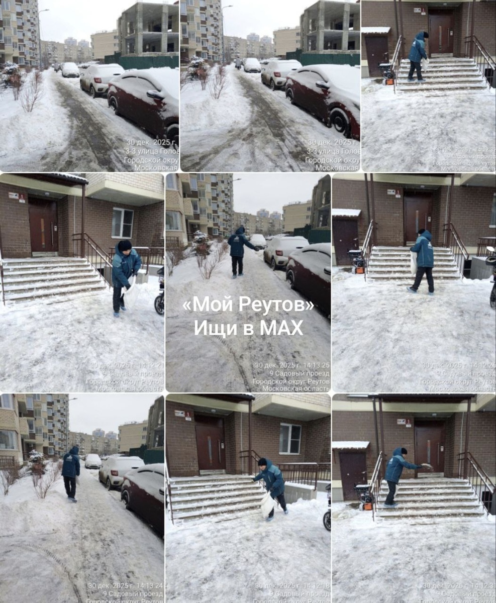 ❗Мой Реутов, Здравствуйте! По состоянию на 30.12.2025г. выполнена уборка от снега и наледи на указанной территории. С уважением, администрация г.о. Реутов! 📲 «Мой Реутов» в MAX