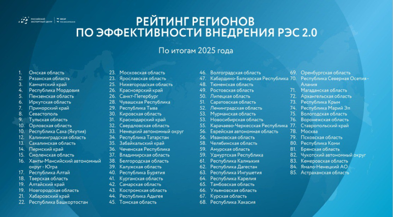 По результатам 2025 года Республика Мордовия вошла в пятёрку лидеров среди российских регионов по результативности внедрения Регионального экспортного стандарта 2.0. В обновлённом рейтинге, составленном Российским экспортным центром, регион занял четвёртое место по стране и первое место в Приволжском федеральном округе. РЭС 2.0 представляет собой комплекс из пятнадцати инструментов, предназначенных для содействия регионам в организации поддержки экспортёров и развитии несырьевого экспорта. Лидирующая позиция Мордовии обусловлена планомерной работой с предпринимателями и созданием благоприятной среды для выхода компаний на международные рынки. «Достижение стало возможным благодаря целенаправленной работе по формированию условий для выхода предприятий на внешние рынки и оказанию поддержки компаниям, ориентированным на экспорт. Мы намерены продолжать работу по наращиванию экспортного потенциала и улучшению наших показателей в федеральных рейтингах», — подчеркнул Председатель Правительства