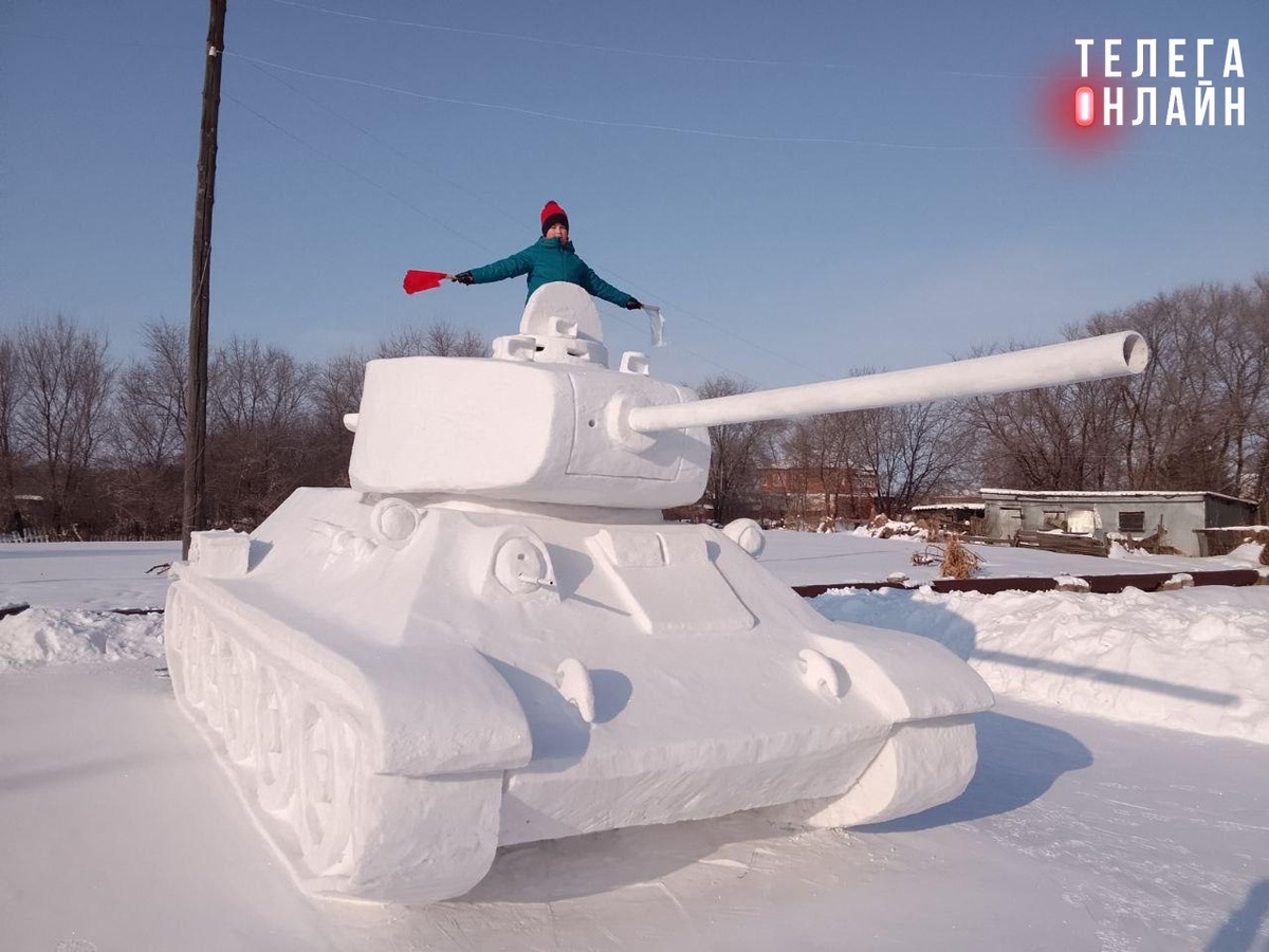 Год защитника Отечества завершается бравым снеговиком в виде танка из Амурской области.