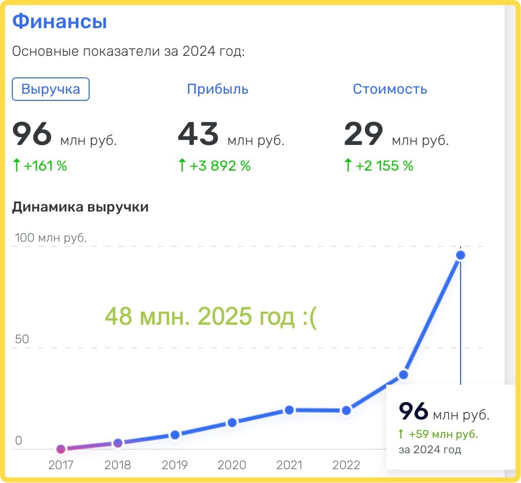 выручка за 2025. А на картинке график выручки с основани бизнеса до 2024 года включительно. Упали где-то на 40% год к году (2025 к 2024). Так-так, мне срочно нужен эксперт по росту бизнеса (масштабированию), лет 24 от роду, который расскажет как надо действовать в 2026 году... Бугага. А если серьезно, в 2026 не ожидаю прорывов-разрывов-прыжков. Цель простая - не растерять команду, компетенции как минимум. Как максимум попытаться сделать в парсинге продукт на базе ИИ. Нейронки умнеют и я вижу шансы создания на их основе продукта. Если получится, то попробуем вывести такой сервис на мир. Он (мир) огромен, платежи точно решаемая история (Армения), шансы заработать есть. Русский ИТ бизнес