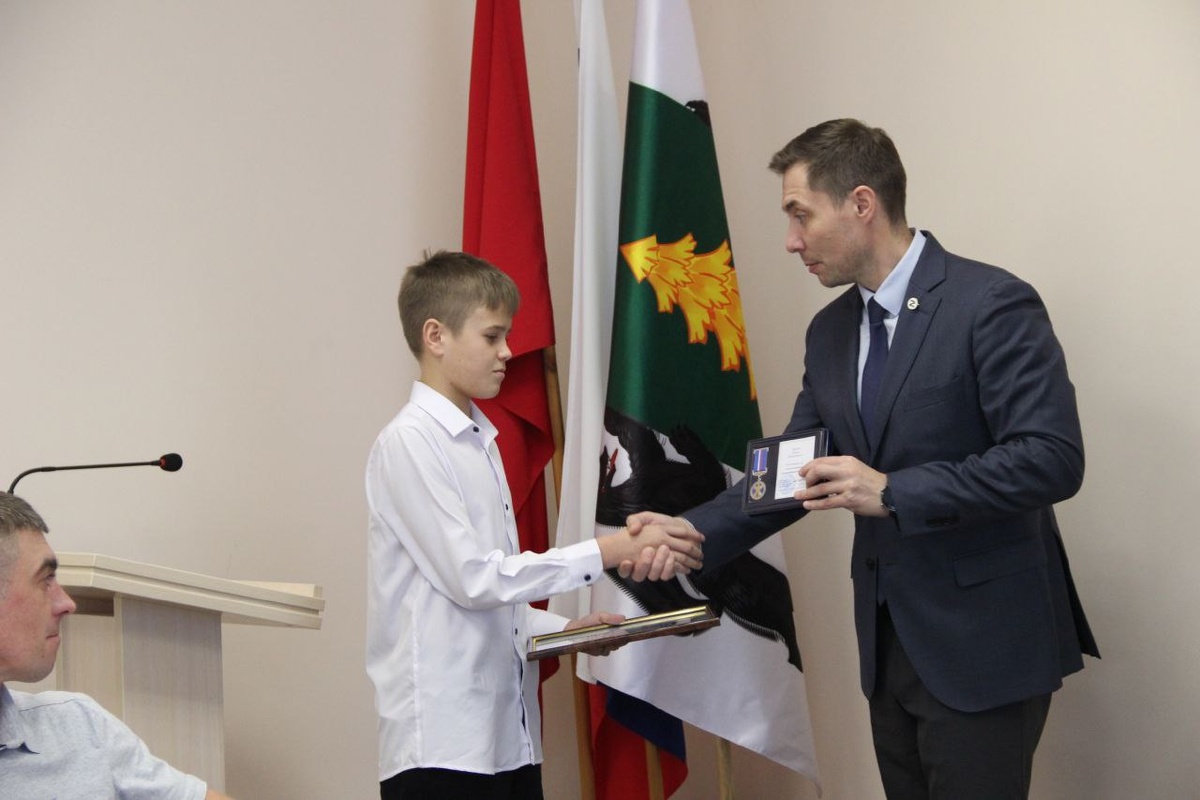 №8 (поселок Стрелка). Он спас своего друга, который чуть не утонул на Ангаре. 27 июля друзья были на реке. Товарищ Романа отошел от берега и, не почувствовав под ногами дна, запаниковал, начал тонуть. Роман быстро среагировал, схватил его и потащил к берегу. Благодаря решительности и мужеству Романа сохранена жизнь человека. 💬Евгений Петренко: «Считаю большой честью возможность лично поблагодарить героя. Вручил ему почетную грамоту за проявленное мужество и самоотверженность, а также передал медаль «За проявленное мужество» от председателя Совета Федерации Валентины Ивановны Матвиенко. Роман не считает, что совершил подвиг. Он уверен, что любой человек на его месте поступил бы также. Наверное, все же, не любой, а с особым складом характера. Роман еще не определился с будущей профессией, но когда-то думал стать спасателем. Считаю поступок Романа примером высокого чувства ответственности. Благодарю его родителей за достойное воспитание сына и привитые ценности, которые помогли ем