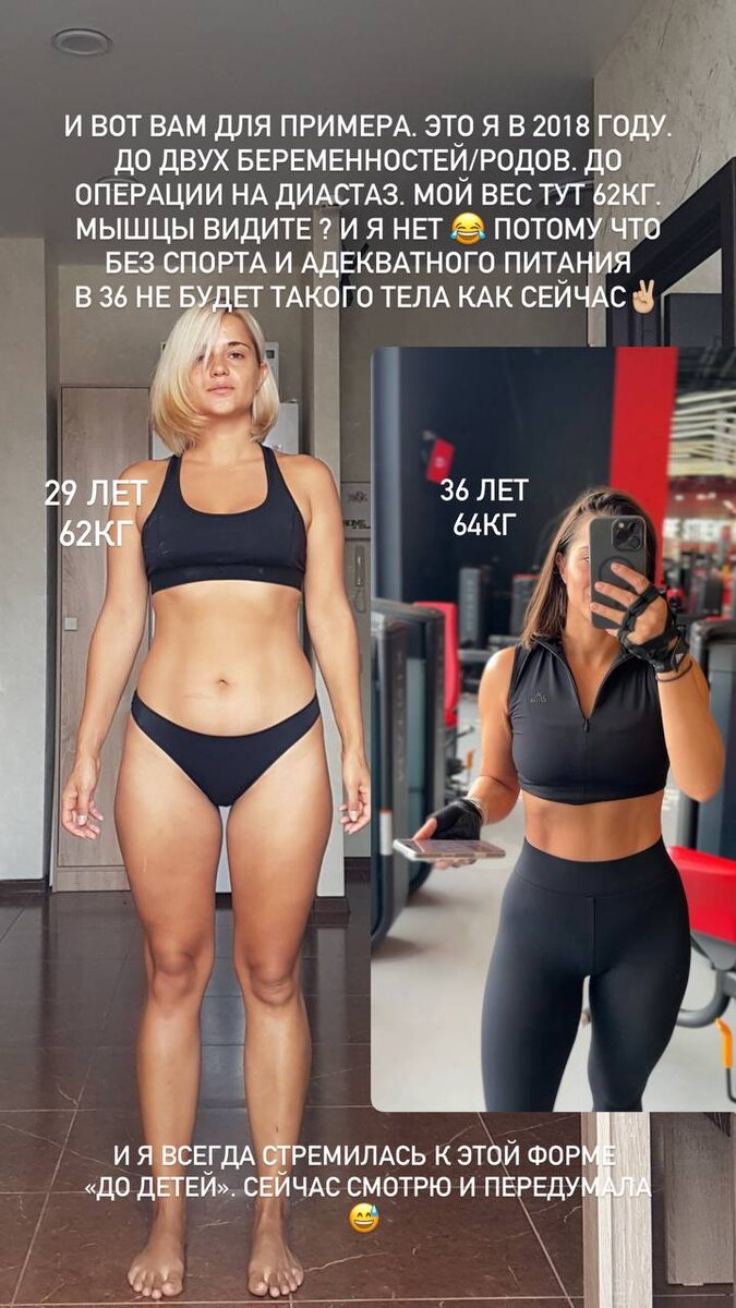 Часто вижу комментарии и про операцию и про то, что только на питании можно похудеть. Поэтому оставлю это фото тоже тут. Вот моё ДО где не было такой проблемы как диастаз, еще не было рождения детей и спорта тоже не было 😂😅 и это вроде +-один вес, но как по разному может выглядеть тело 🔥