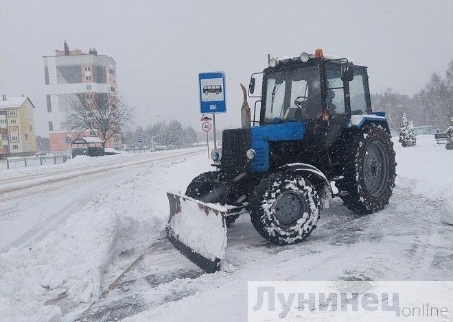 С вечера в Лунинецком районе работает техника на расчистке снега