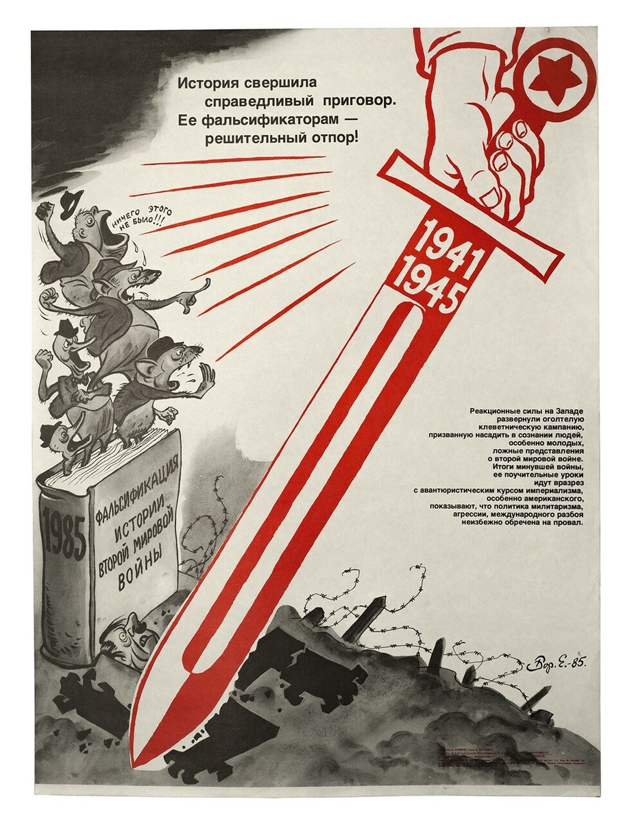 Плакат «История свершила справедливый приговор. Её фальсификаторам — решительный отпор!». Б. Ефимов. 1985 г.