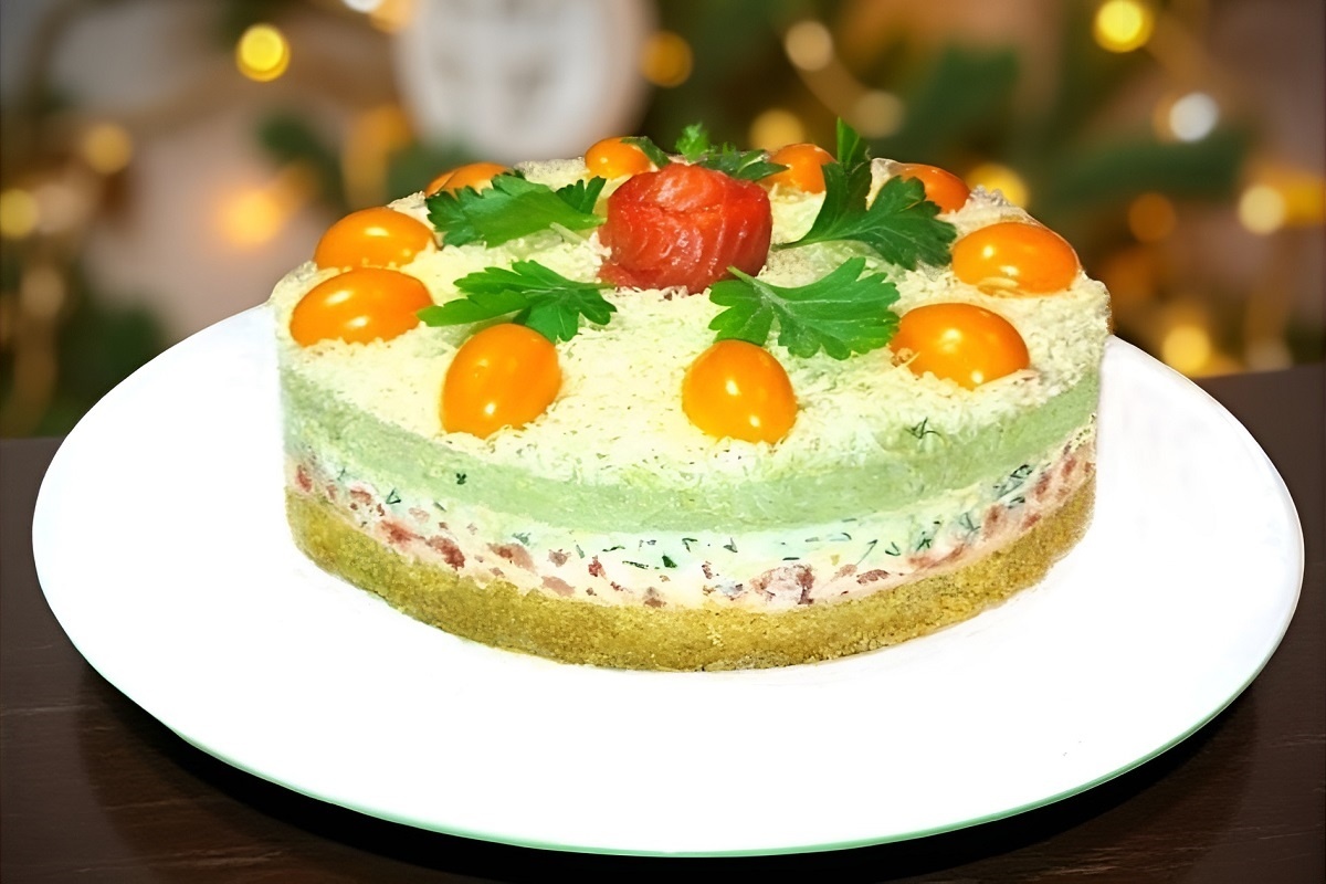Предложенный рецепт превращает привычный десерт в многослойное, богатое вкусами и текстурами основное блюдо или шикарную закуску. Такой торт станет не только прекрасным украшением праздничного стола, но и непременно поразит всех присутствующих своим необыкновенным нежным вкусом!