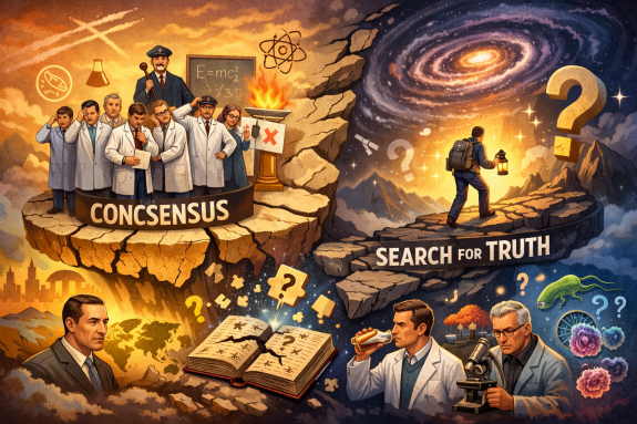 История науки - это кладбище «неопровержимых» истин, смена которых происходила мучительно и с большим опозданием. Научный консенсус, который является по сути коллективной позицией сообщества на конкретный момент времени, часто ошибочно воспринимается как синоним окончательной правды. Его формирование - это социальный процесс, на который влияют не только логика и эксперименты, но и авторитеты, традиции и парадигмы.
