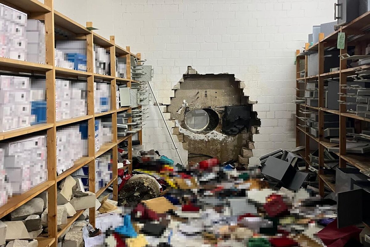 Растерянные клиенты собрались возле отделения, чтобы узнать о состоянии своих счетов: около 2,5 тыс. вкладчиков потеряли средства. Воры проделали дыру в стене хранилища (на фото) и вскрыли более 3 тыс. ячеек. Туда они пробрались через парковку. Их до сих пор не поймали. Фильмов насмотрелись? 👍«БайБайден» в МАХ