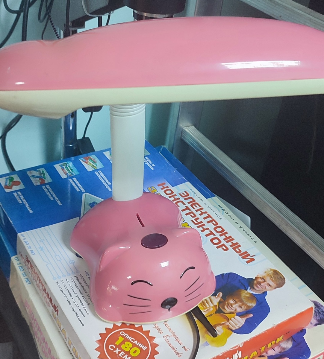 Добрый вечер, дорогие друзья! Скучаю по вам, но порадовать статьями пока не могу. Готовился к экзаменам по электробезопасности. Вчера сдал первый экзамен на вторую группу! Всё самое серьезное ждет меня еще впереди =). Вообще моя программа подготовки получается длиною в год без недели. Так что год меня ожидает интересный! Все свои проекты, инструменты законсервировал пока на неопределенный срок. Хочется верить, что ненадолго. А пока никаких ремонтов и реставраций в работе нет... Еще на прошлой работе, когда отрабатывал положенные законом две недели, починял я одну настольную лампу. И писать-то про нее не хотел, но ввиду скудности материала для статей решил поделиться с вами, как я колхозил эту настольную лампу. Вот такая симпатяшка. Лампа-копилка. Покупали ее дочке, когда она еще в начальной школе училась. Проработала лампа года три, наверное, и благополучно потухла. В те времена не было еще «Озонов», а в наши магазины такие лампочки не завозили. «А какие такие?» — спросите вы? А стояла