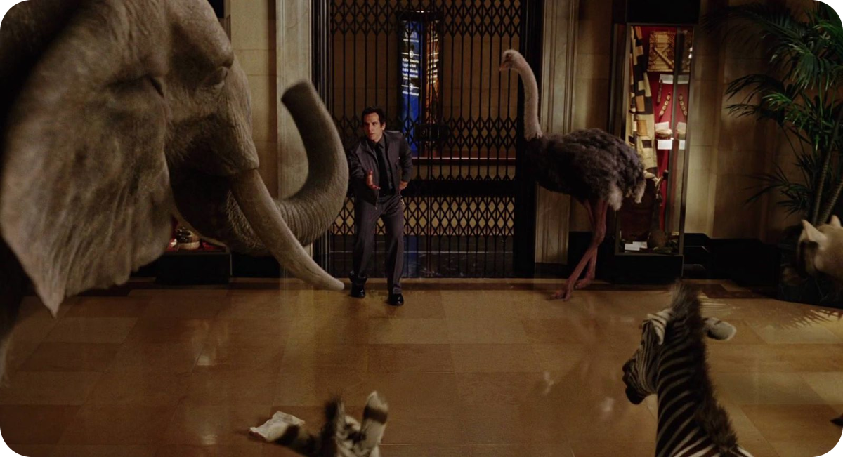 О, это такое веселое и доброе кино! Работник музея Ларри получает ночную работу, а оказывается, что там, когда все уходят, все экспонаты и динозавры, и римские воины, и маленький хулиган-президент оживают! Полная неразбериха, беготня, но очень мило. Смотрится на одном дыхании, будто сама побывала в этом волшебном музее. Главный милый актер Бен Стиллер, который всё время удивляется. Рекомендую для поднятия настроения!