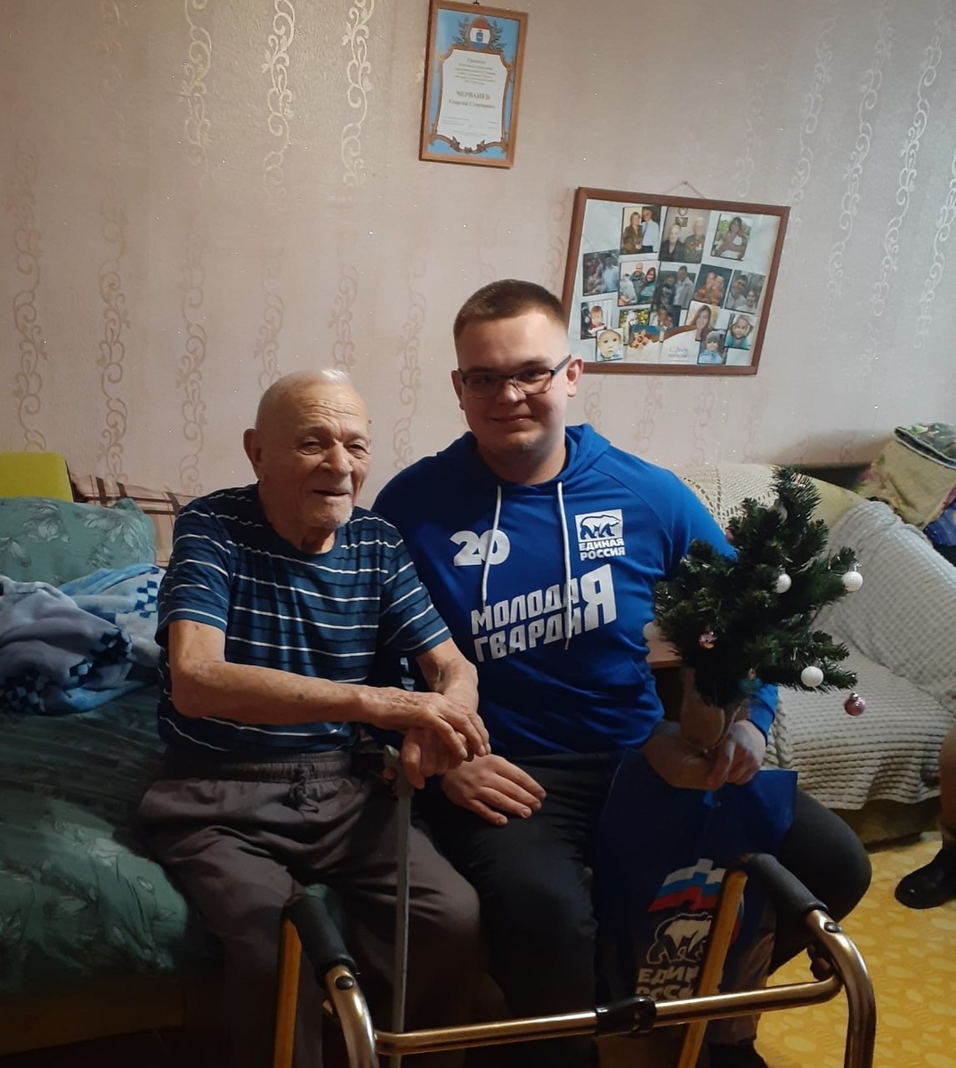 Молодогвардейцы, члены партии «Единая Россия» Железнодорожного района г. Самары поздравили с Новым Годом участника Великой Отечественной войны Георгия Семеновича Черванева.
