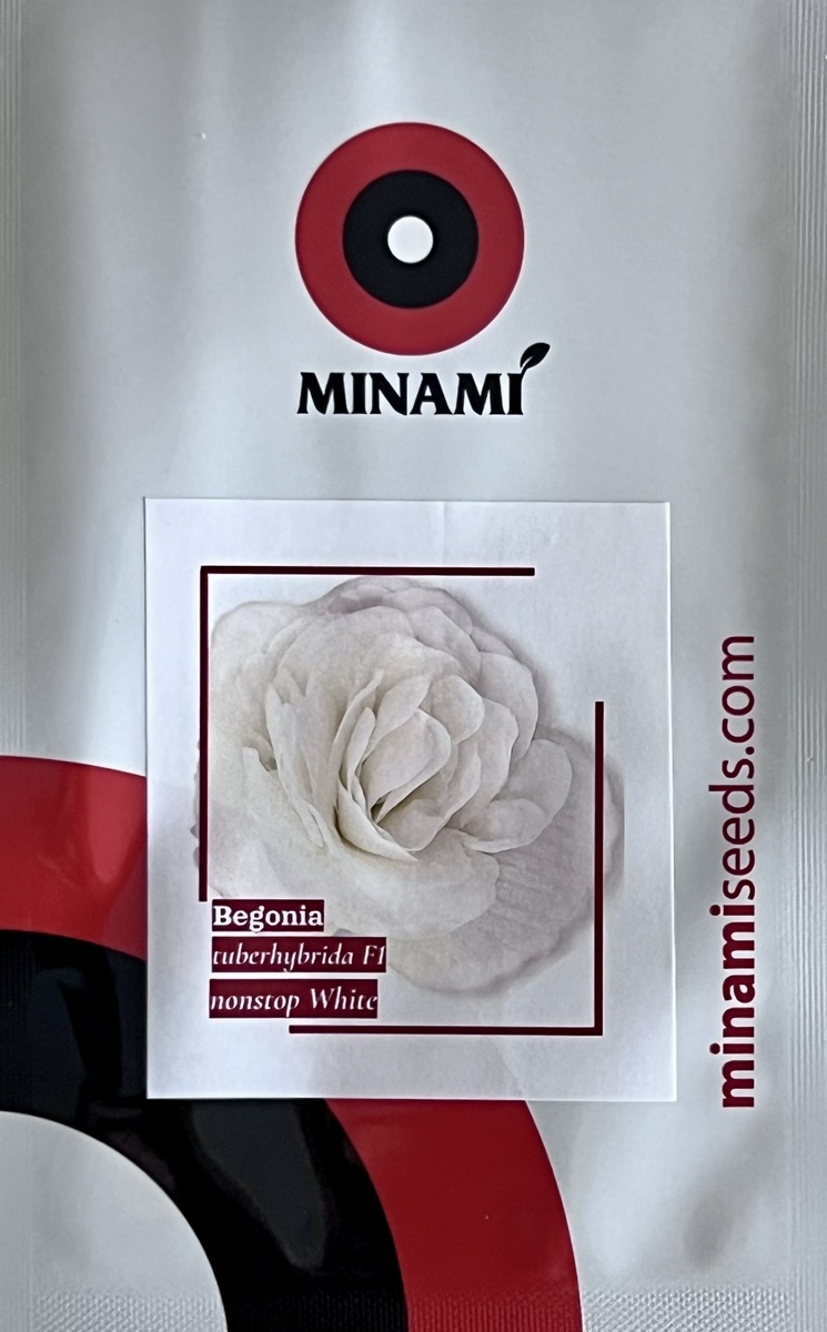 Minami Seeds Бегония клубневая F1 Нонстоп Вайт (зелёный лист резной сердцевидный) – идеальный выбор для производства рассады, с последующим выращиванием растений в горшках, контейнерах и в открытом грунте. Можно использовать в комнатном озеленении. Гибрид формирует плотный компактный куст, хорошо ветвящийся от корней, высотой и шириной около 25 см. Растение характеризуется хорошей силой роста и выравненным, шаровидным габитусом. Цветки густомахровые, белые диаметром до 10 см. Семена клубневой бегонии сеют с декабря по январь. Для успешного прорастания семян требуется тепло (22-25°C днем и 18°C ночью) и высокая влажность воздуха. ВНИМАНИЕ - семена очень мелкие. Сеют по одной грануле в торфяные таблетки или на грунт, не присыпают, опрыскивая теплой водой (лучше из шприца или пипетки, пульверизатором вы можете смыть мелкую семечку). Накрывают плёнкой или стеклом. В дальнейшем поливают через поддон. После появления ростков плёнку или стекло убирают. Когда у сеянцев будет 2-3 листика, нео
