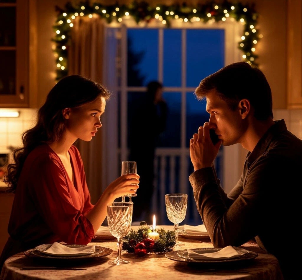 В семь тридцать напряжение достигло пика. Даша присела на краешек дивана, нервно поправляя складки на платье. Алексей стоял у окна, якобы разглядывая уличные гирлянды.