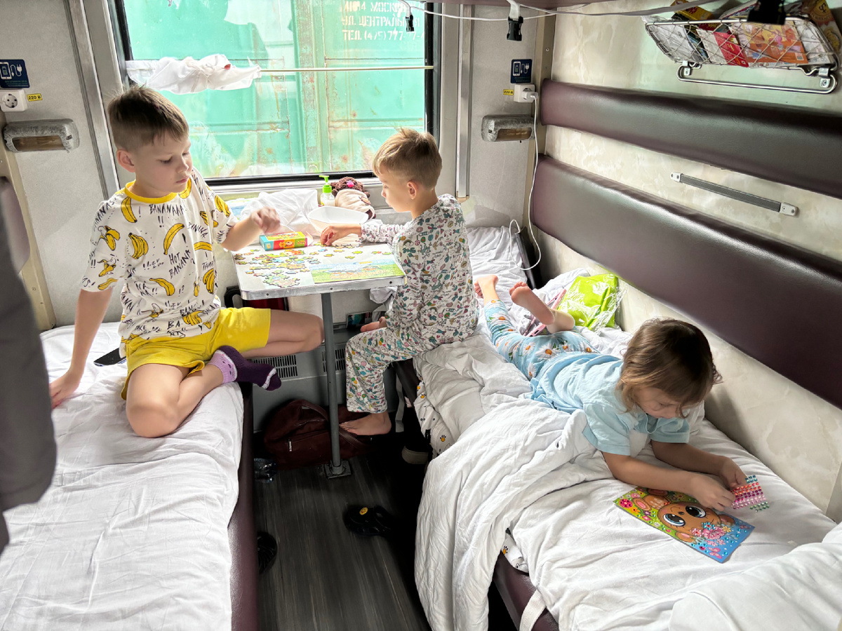 Дети уже большие, почти самостоятельные, спокойно едят специальное «поездное» меню, которое у меня составлено методом проб и ошибок. Я НИКОГДА не беру в поезд: сыр, колбасу, курицу, яйца, салаты и так далее и тому подобное. Я всегда с недоумением смотрю обзоры продуктовых корзин в поезд (никого не осуждаю если что, у каждого свое меню). Мы едим исключительно детское питание: фруктовые и мясные пюрешки, бп лапшу и заварную кашу без добавок. Еще сухпаек в виде печенья, крекеров, ну и яблоки, огурчики, помидорчики (по сезону). Никто из нас не голодает, все спокойно доезжают до места назначения.