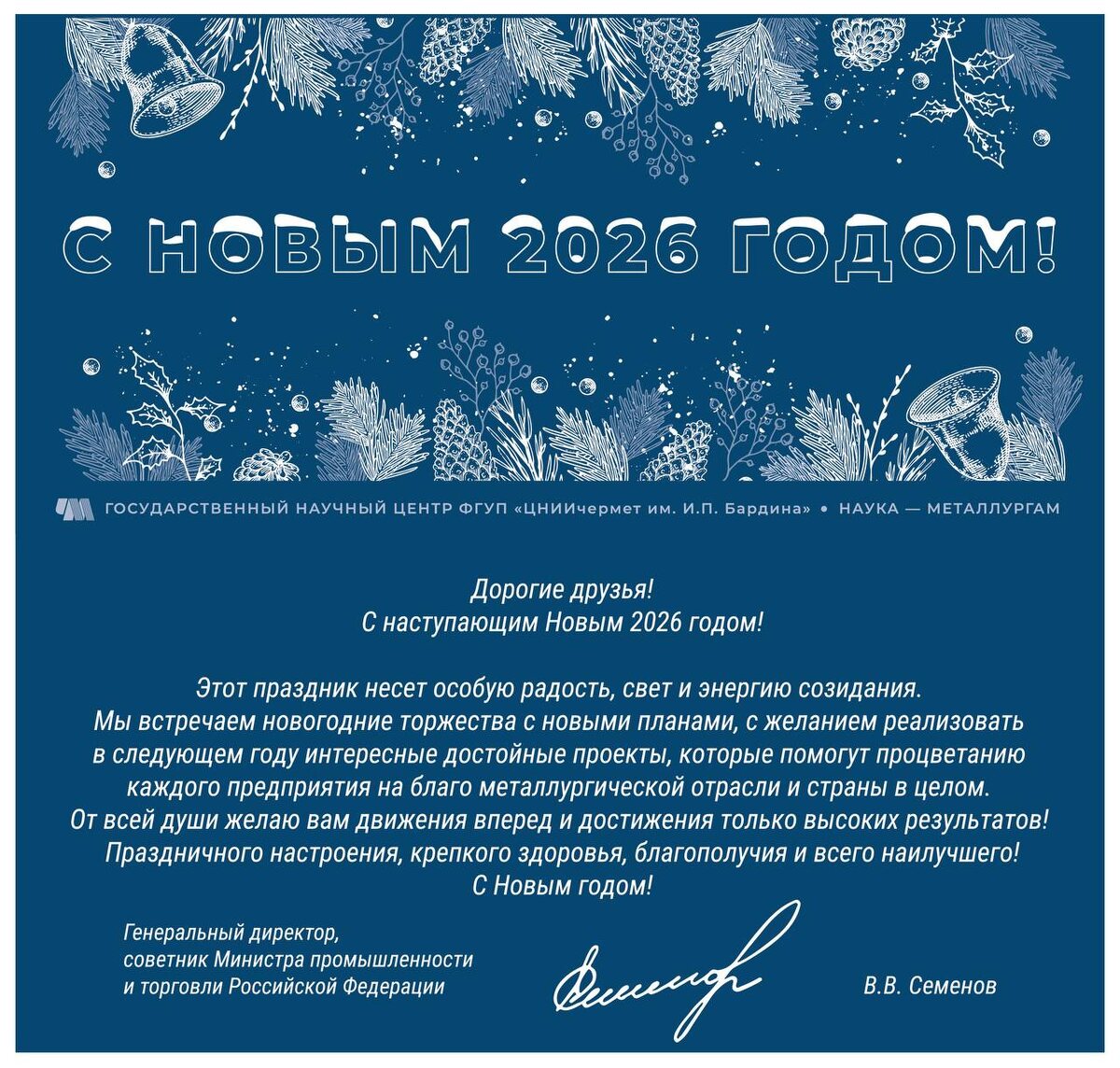🎉🎄🎉 Видеопоздравление с Новым 2026 годом генерального директора ФГУП "ЦНИИчермет им. И.П. Бардина" Виктора Владимировича Семенова