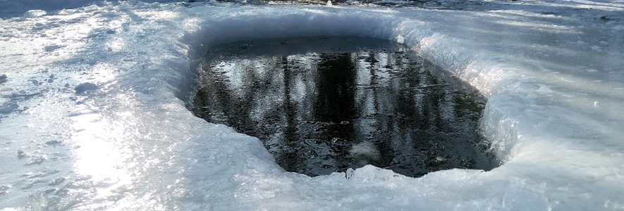 Контроль полыньи. Следите, чтобы прорубь или отверстие во льду, созданное антиобледенителем, не замерзало. Это необходимо для выхода вредных газов (метана, сероводорода) и притока кислорода.