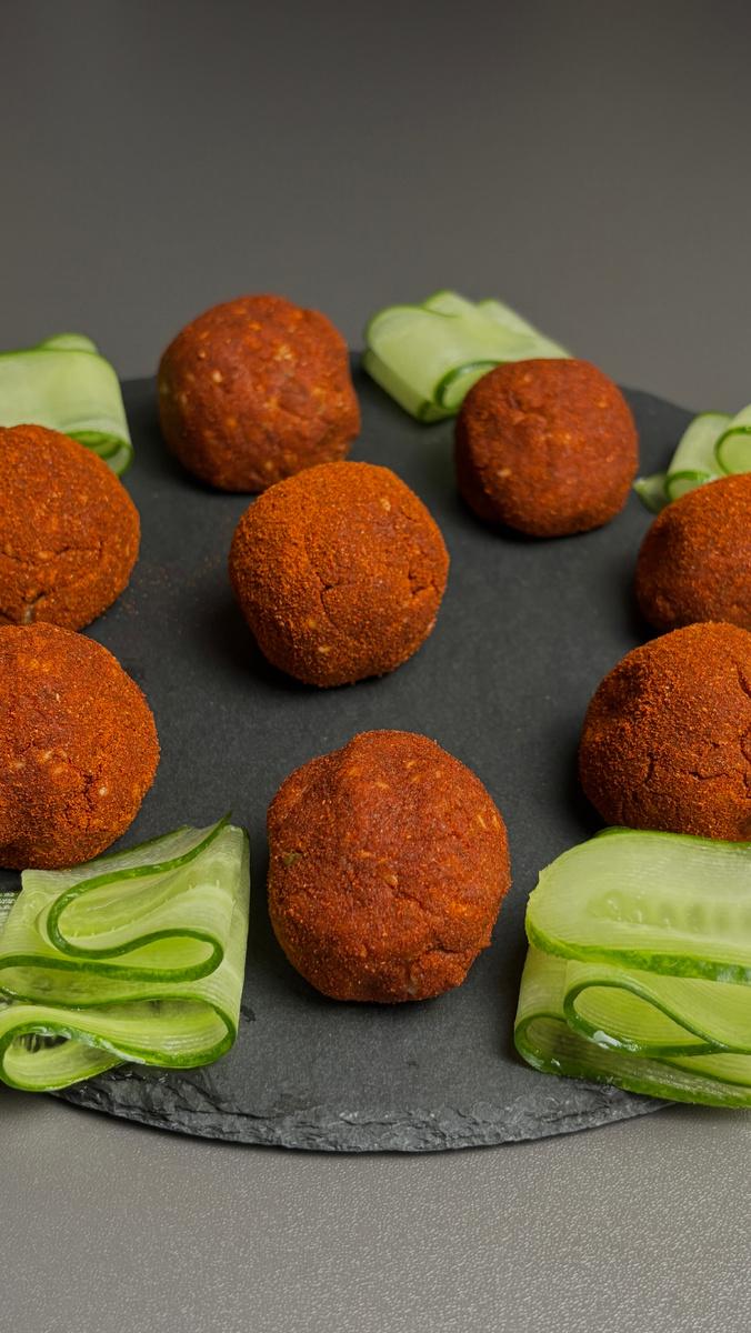 ШАГ 3 - Скатать шарики из филе рыбы + чечевица + кунжут и мята. Обвалять их в паприке.