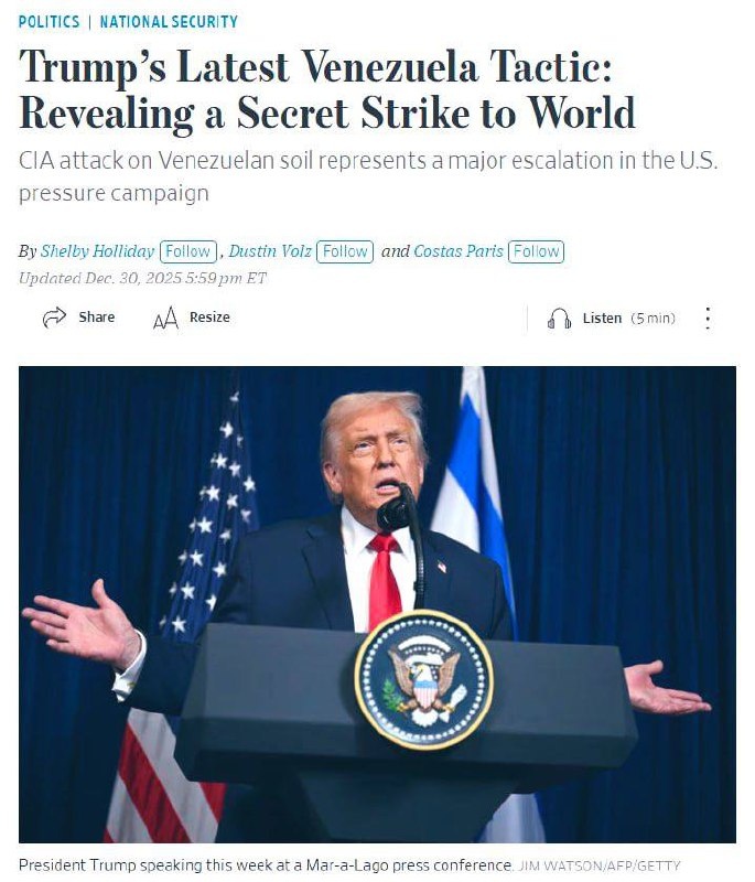 CIA UPSET TRUMP ANNOUNCED VENEZUELA STRIKE — WSJ