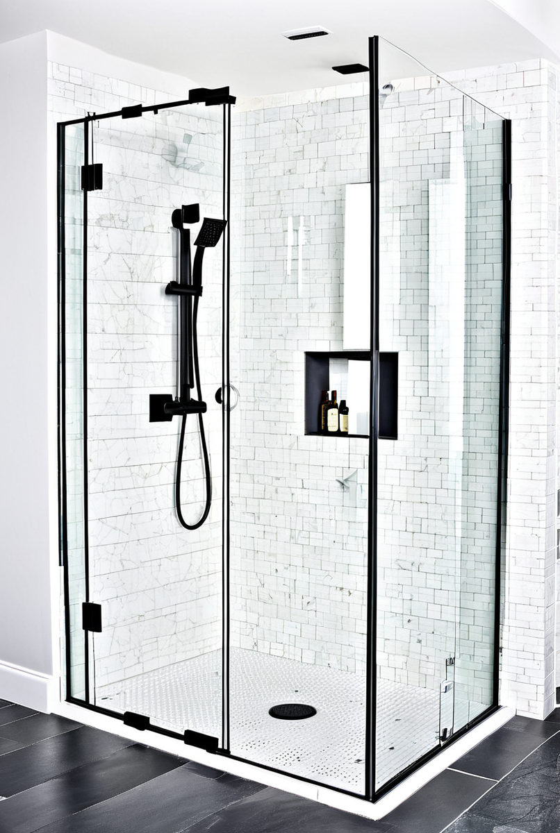 Ответ: Классический хромированный профиль считается более практичным, так как на его глянцевой поверхности менее заметны высохшие капли воды и разводы. Стильный черный профиль, особенно матовый, требует более внимательного ухода. Чтобы он сохранял свой эффектный вид, его рекомендуется протирать мягкой тканью насухо после каждого использования душа для предотвращения образования известкового налета.