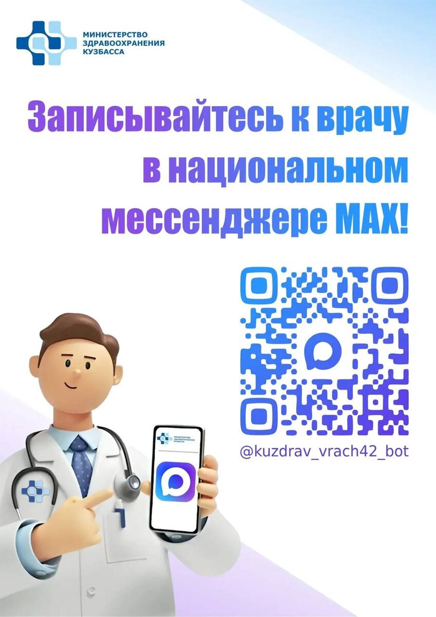 В мессенджере MAX запущен чат-бот "Запись к врачу в Кузбассе"!