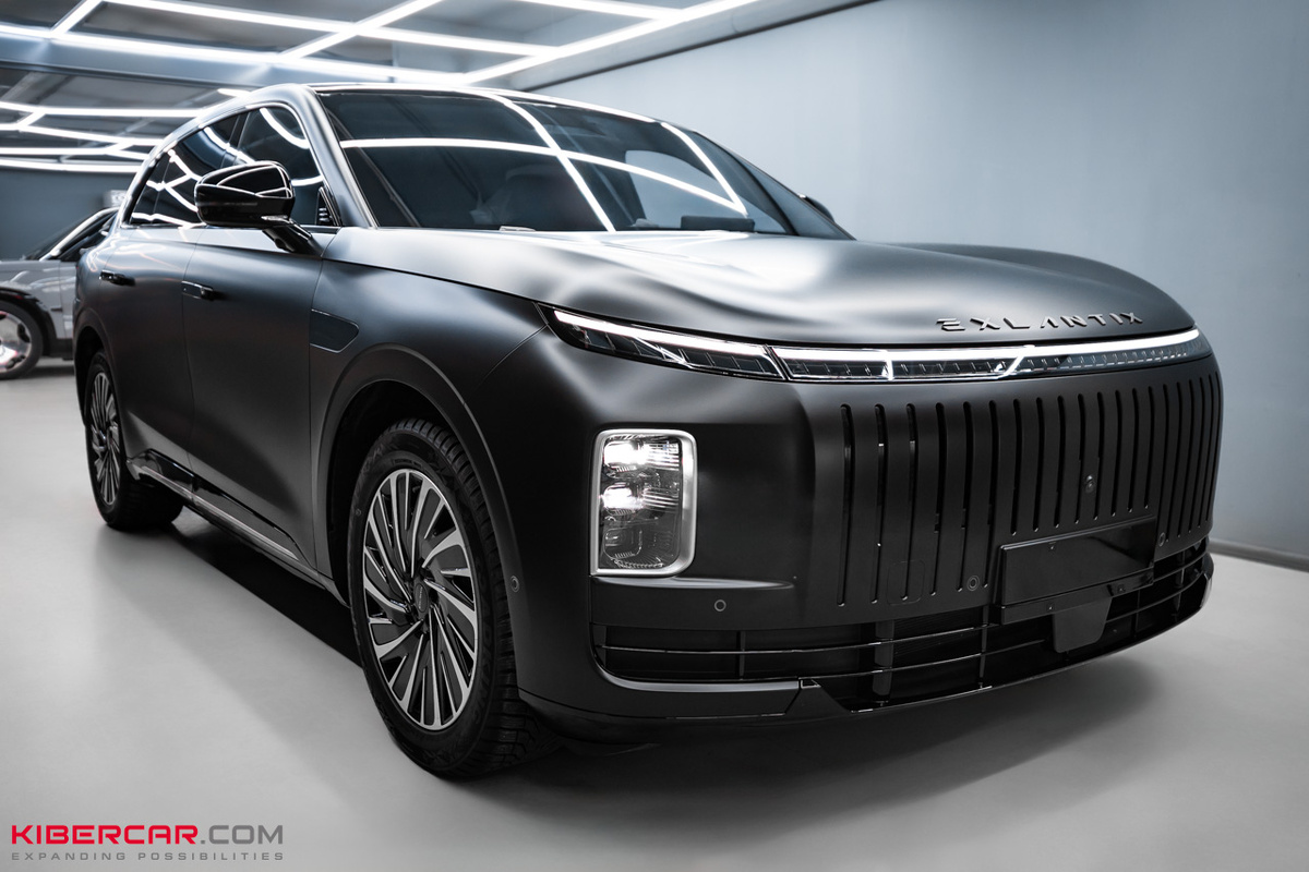 Задача: защитить кузов EXEED Exlantix ET от мелких повреждений. Решение: оклейка защитной полиуретановой пленкой с матовым эффектом. В наш детейлинг-центр приехал EXEED Exlantix ET — современный технологичный электрокроссовер с выразительным дизайном и большим количеством глянцевых элементов. Владелец автомобиля хотел не просто защитить кузов, но и подчеркнуть индивидуальность модели, сделав внешний вид более строгим и премиальным. Матовая полиуретановая пленка сочетает в себе сразу несколько важных функций: На Exlantix ET матовая текстура особенно удачно подчеркивает строгие линии кузова, оптику и сложную форму деталей, делая автомобиль визуально дороже и солиднее. Перед нанесением полиуретановой пленки автомобиль прошёл обязательный комплекс подготовительных работ. Кузов был тщательно вымыт, очищен от загрязнений и обезжирен. Особое внимание уделили стыкам, кромкам и труднодоступным зонам, так как именно от подготовки напрямую зависит качество и срок службы пленки. После подготовки